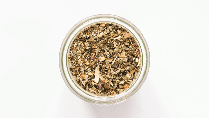 Ingrédients : Tulsi, pavot de Californie, mélisse, sarrasin, sauge, algue, rose, épices.