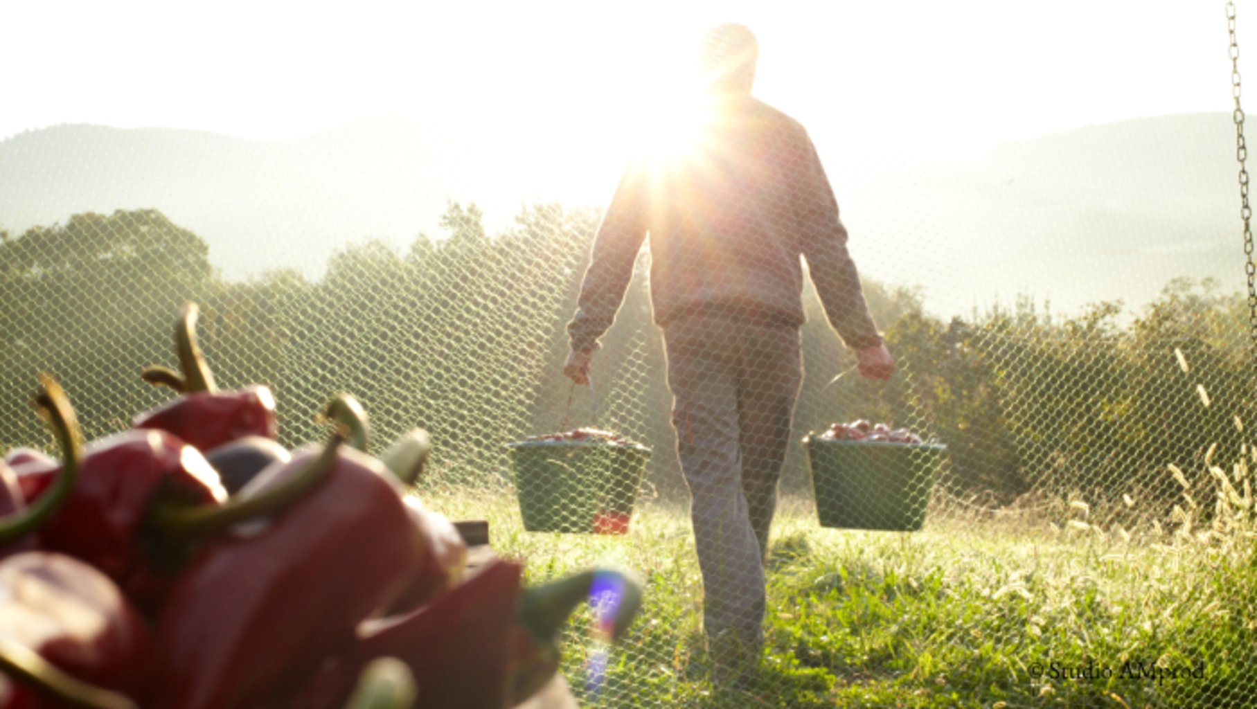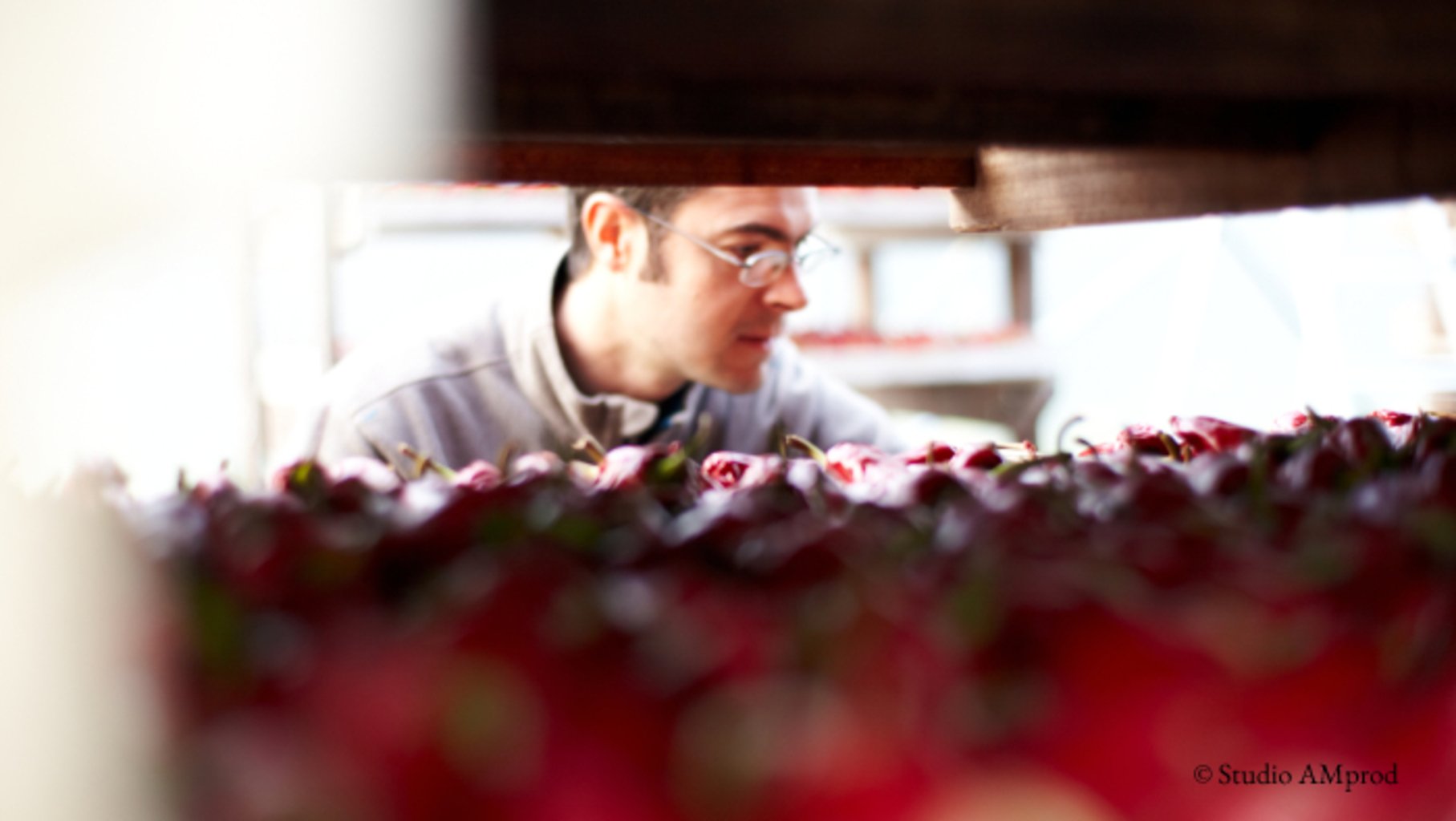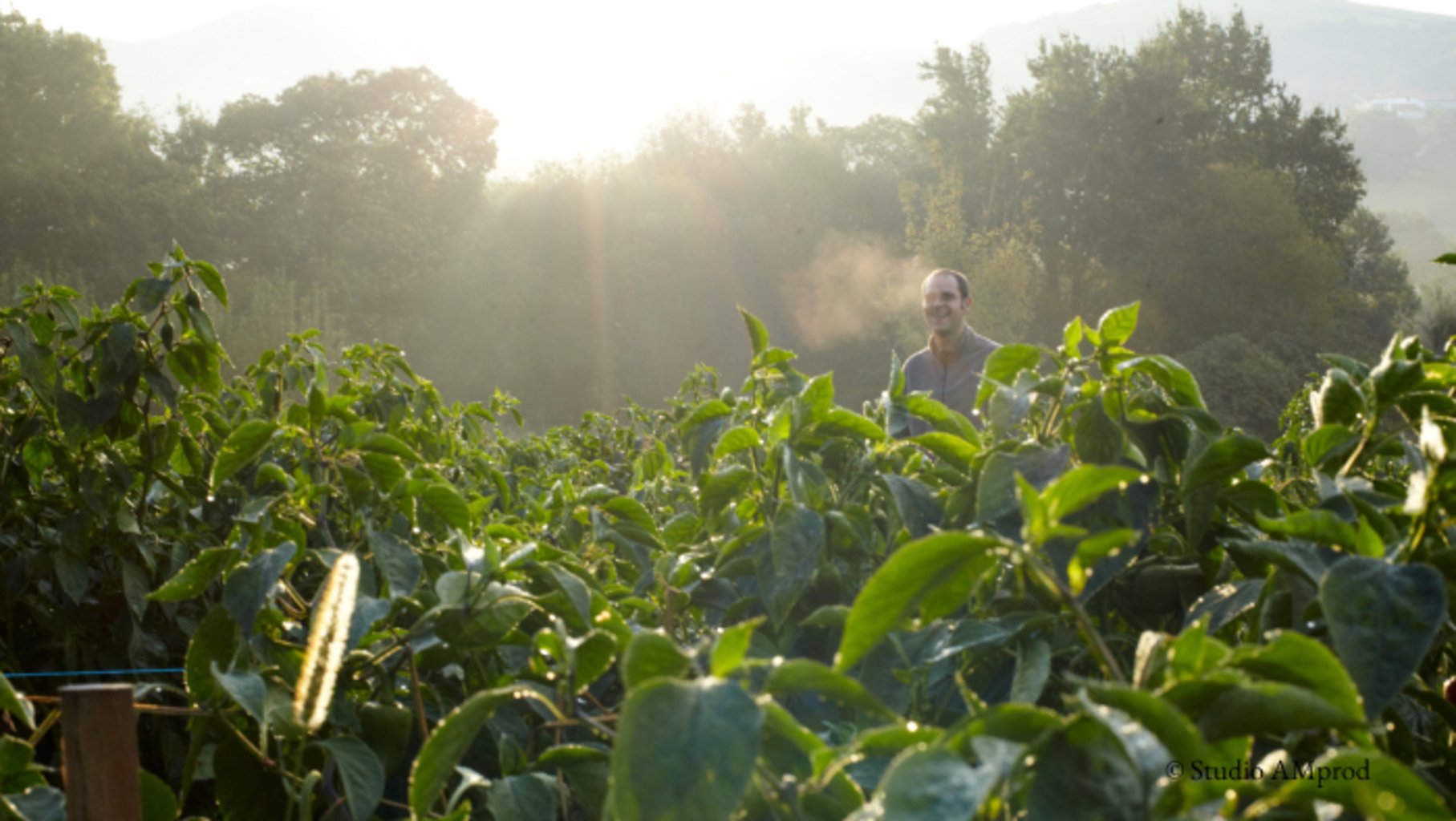 Sylvain, our Espelette pepper grower, harvests his organically-grown chile peppers after they have fully ripened in the rich soil of the farm he inherited from his grandparents in Espelette, in the Basque region. In the breathtakingly beautiful spot, Sylvain also raises goats and grows corn.