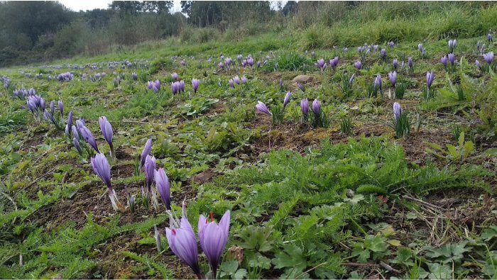 200 years ago, saffron was grown in Brittany. In 2018, Fabienne, a self-taught saffron grower, revived the tradition by planting a 1-acre organic saffron field in the countryside between Dol-de-Bretagne and Mont-Saint-Michel. The bulbs matured into magnificent flowers. The harvest, which is carried out by hand just like the weeding, takes place in October.