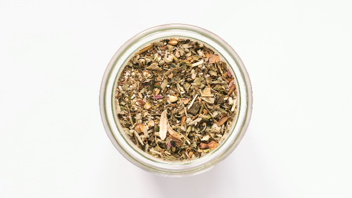 Ingrédients : Tulsi, pavot de Californie, mélisse, sarrasin, sauge, algue, rose, épices.