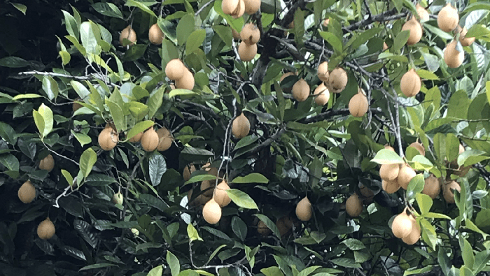 Au bout de 9 mois, la fleur jaune délicate et parfumée donne un fruit qui s’ouvre lorsqu’il atteint sa maturité. Pour cueillir les fruits du muscadier, situés parfois à 10 voire à 20 mètres de hauteur, les cueilleurs utilisent de long bâtons en bois pour les faire tomber de l’arbre. Les fruits sont aussitôt ramassés.