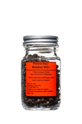 Polyvalent et riche en arômes, le poivre noir de Malabar trouve sa place dans une multitude de recettes, des plus simples aux plus élaborées. C’est sans doute l’une des épices les plus universelles, capable de relever aussi bien une viande rôtie qu’un poisson poché, des légumes grillés, un fromage affiné ou même un dessert. Son parfum chaud et fruité, à la fois intense et équilibré, en fait un compagnon idéal au quotidien comme dans les plats plus raffinés. Utilisé entier, concassé ou moulu, il sublime les préparations sans jamais écraser les autres saveurs.
