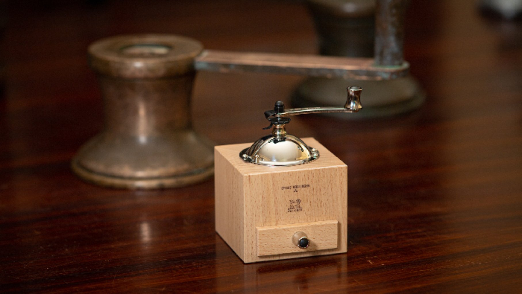 De nombreux détails le rendent rare : son tiroir légèrement incurvé pour récupérer l’ensemble de la mouture et que rien ne reste dans les coins, sa taille qui permet de bien le tenir en main, son système d’ouverture encore facilité pour glisser les grains facilement, et sans son tiroir, le moulin égrène sa mouture directement sur le plat…