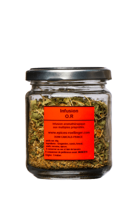 Ingrédients : gingembre, cumin, fenouil, aneth, verveine, épices
