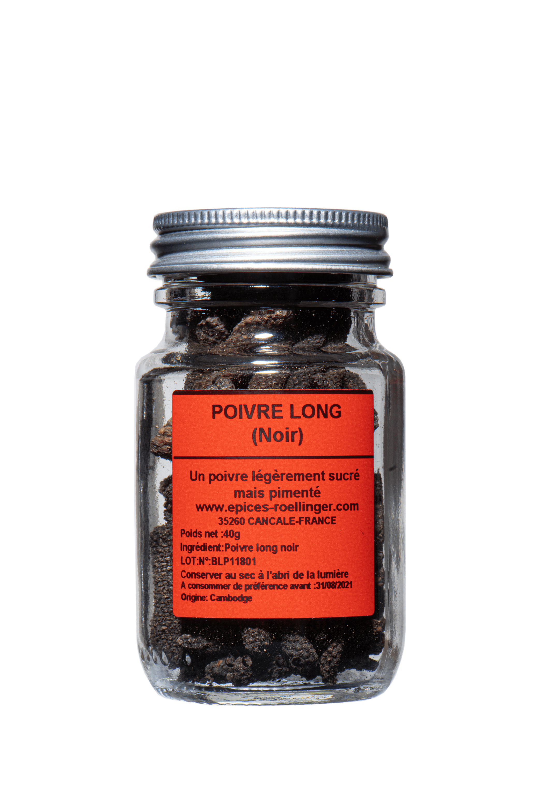 Le poivre long (piper longum) se rencontre à l'état sauvage dans le nord et le sud de l'Inde. Il est cultivé au Sri Lanka et au Cambodge. Il prend la forme d'un épi. Le poivre long a longtemps imprégné les cuisines des cours européennes avant qu'il ne soit détrôné par le vrai poivre et le piment au XVIème siècle. Le poivre long est utilisé pour aromatiser des pickles de légumes. En Inde, il fait partie des remèdes ayurvédiques. C'est un poivre aujourd'hui qui mériterait d'être connu dans nos cuisines. A Cancale, nous utilisons le poivre long dans la composition de notre Poivre des Mondes.