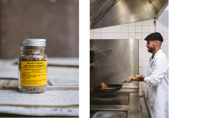 Les ingrédients qui le composent, sont le reflet de plusieurs voyages, pour former un autre paysage gustatif, empreint de l’esprit du Yakumi qui pourrait se traduire par le goût du silence.